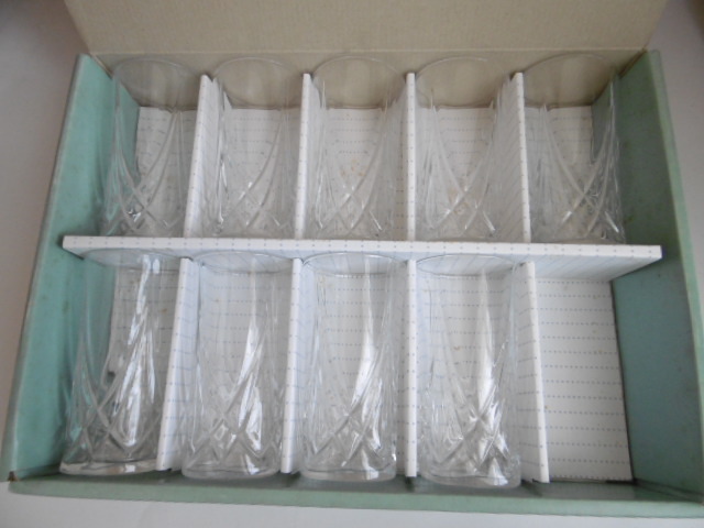 > 昭和/当時物 ADERIA GLASS/アデリアグラス 9客セット ガラスコップ/タンブラー/カットグラス 長期保管
