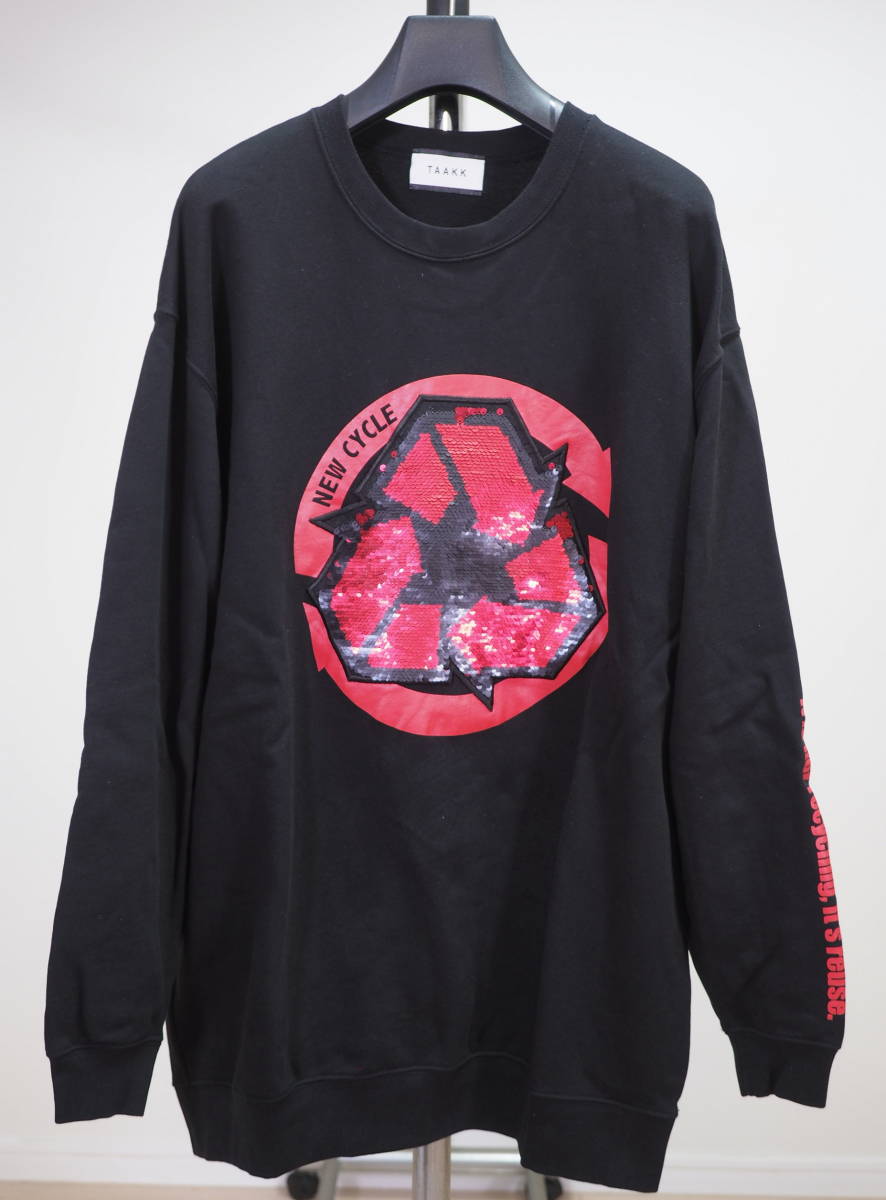 > TAAKK ターク 20SSスパンコール刺繍オーバーサイズスエット3黒 日本製 パーカー