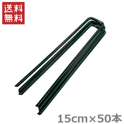 - 人工芝ピン 人工芝押さえピン 人工芝用ピン コの字ピン杭 シート押さえ 15cm 50本セット 防草シート 園芸シート 緑色 園芸用品 園芸資材