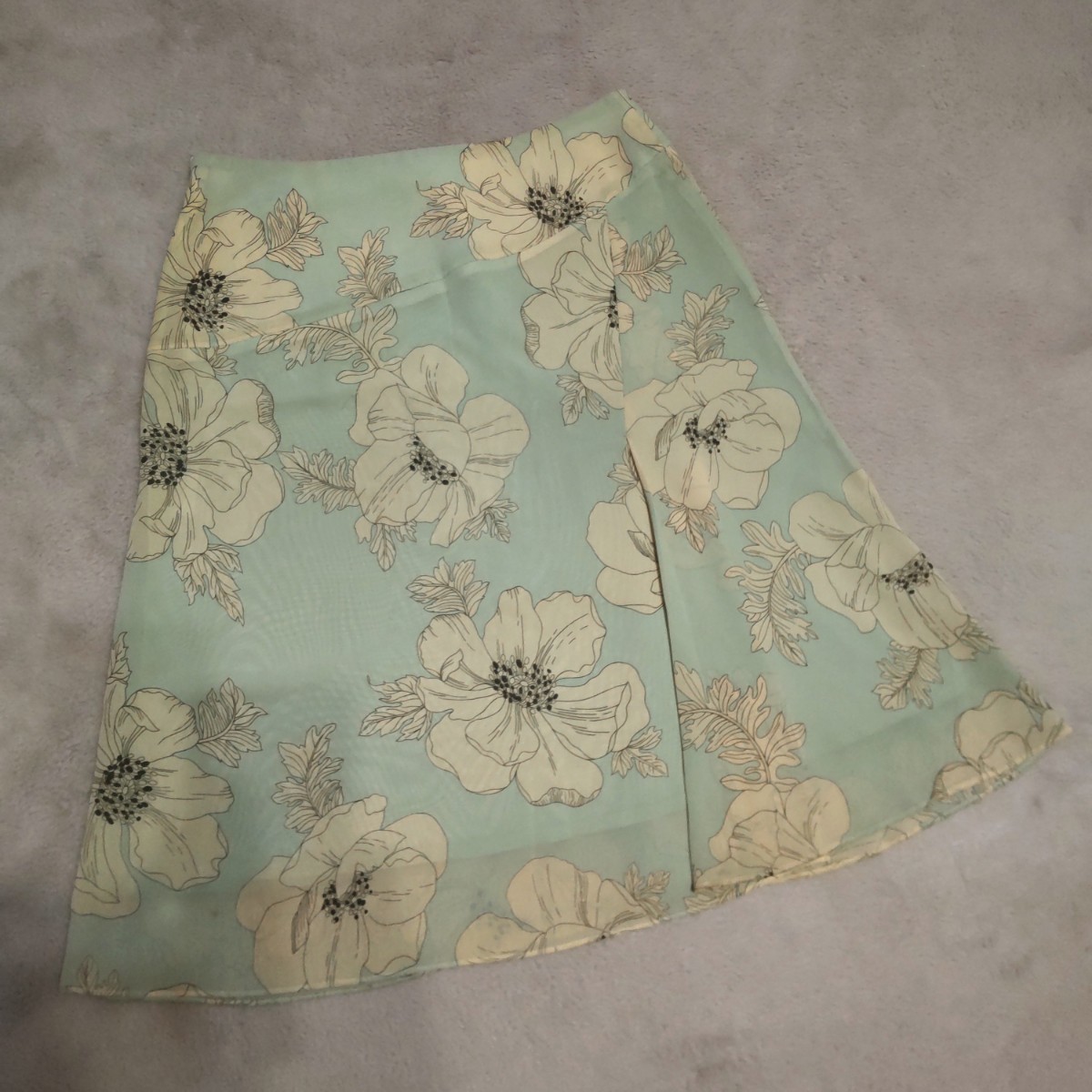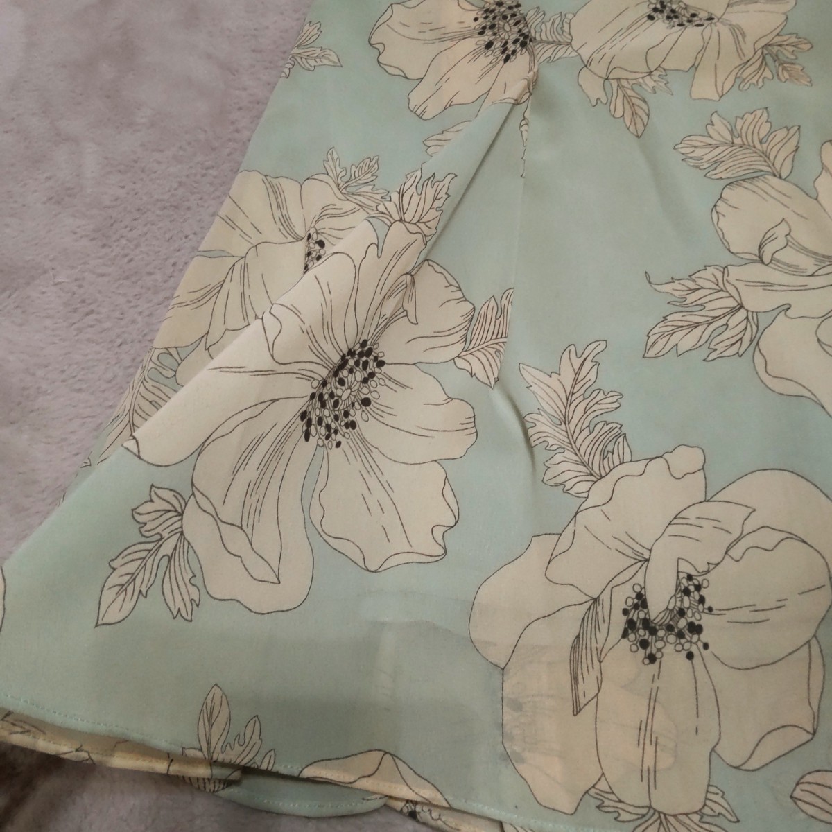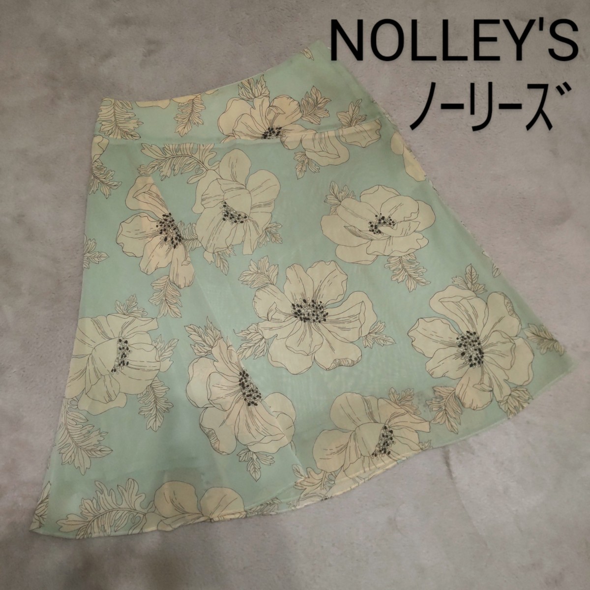 > ノーリーズ NOLLEY'S スカート ひざ丈 フレアー Aライン 台形 フレア ブルー ベージュ ボタニカル柄 花柄 フェミニン ガーリー 上品 M