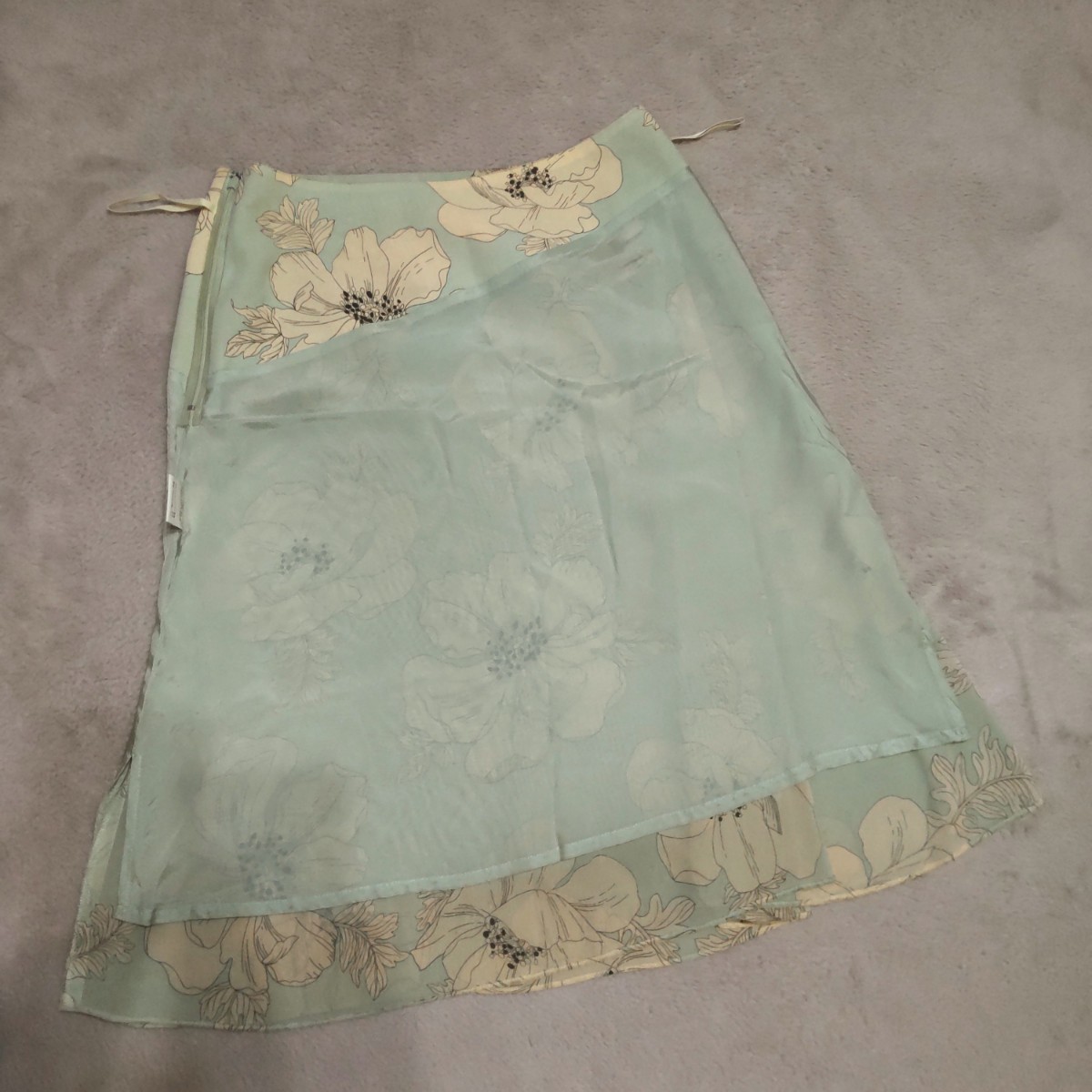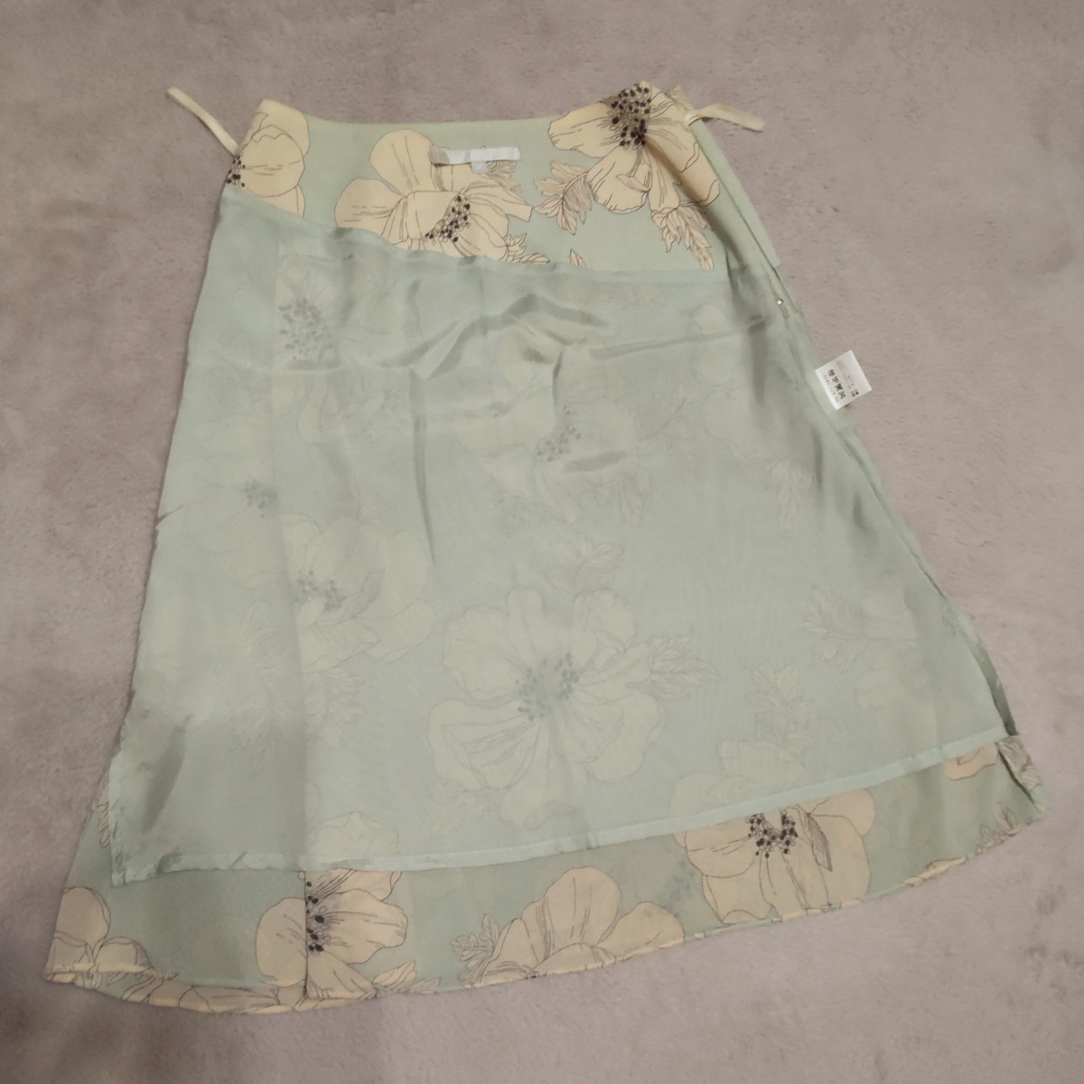 - ノーリーズ NOLLEY'S スカート ひざ丈 フレアー Aライン 台形 フレア ブルー ベージュ ボタニカル柄 花柄 フェミニン ガーリー 上品 M