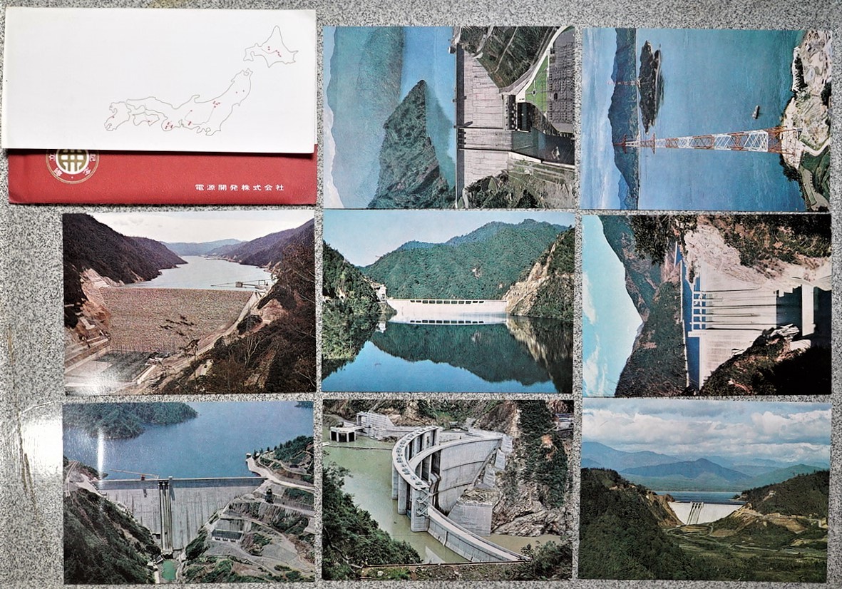 - ダム絵葉書 電源開発株式会社 創立10周年記念 8枚 紙ケース付 検:ダムサイト 佐久間 田子倉 坂本 御母衣 奥只見 糠平 二津野ダム 送電線