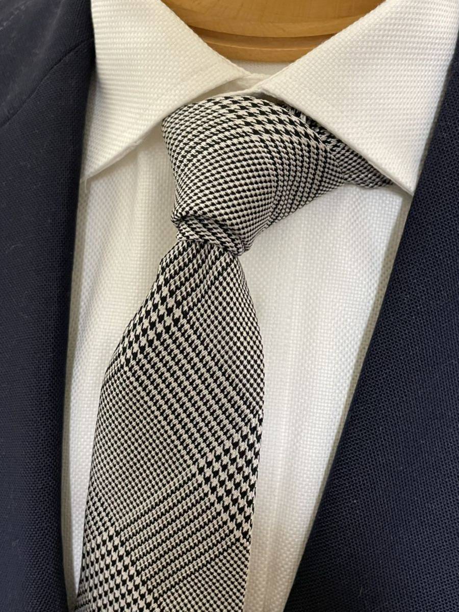 - 【美品】スーツセレクト 日本製 グレンチェック 大剣約7cm グレー定番 高級シルク
