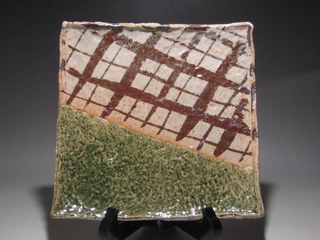 - 北大路魯山人 織部 四方鉢 共箱 本物返品OK. 0099