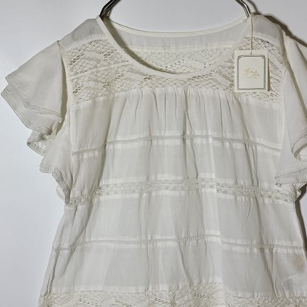 - 【新品・未使用】Jf Ready Made フリルスリーブ カットソー レース Mサイズ 白 ホワイト レディース