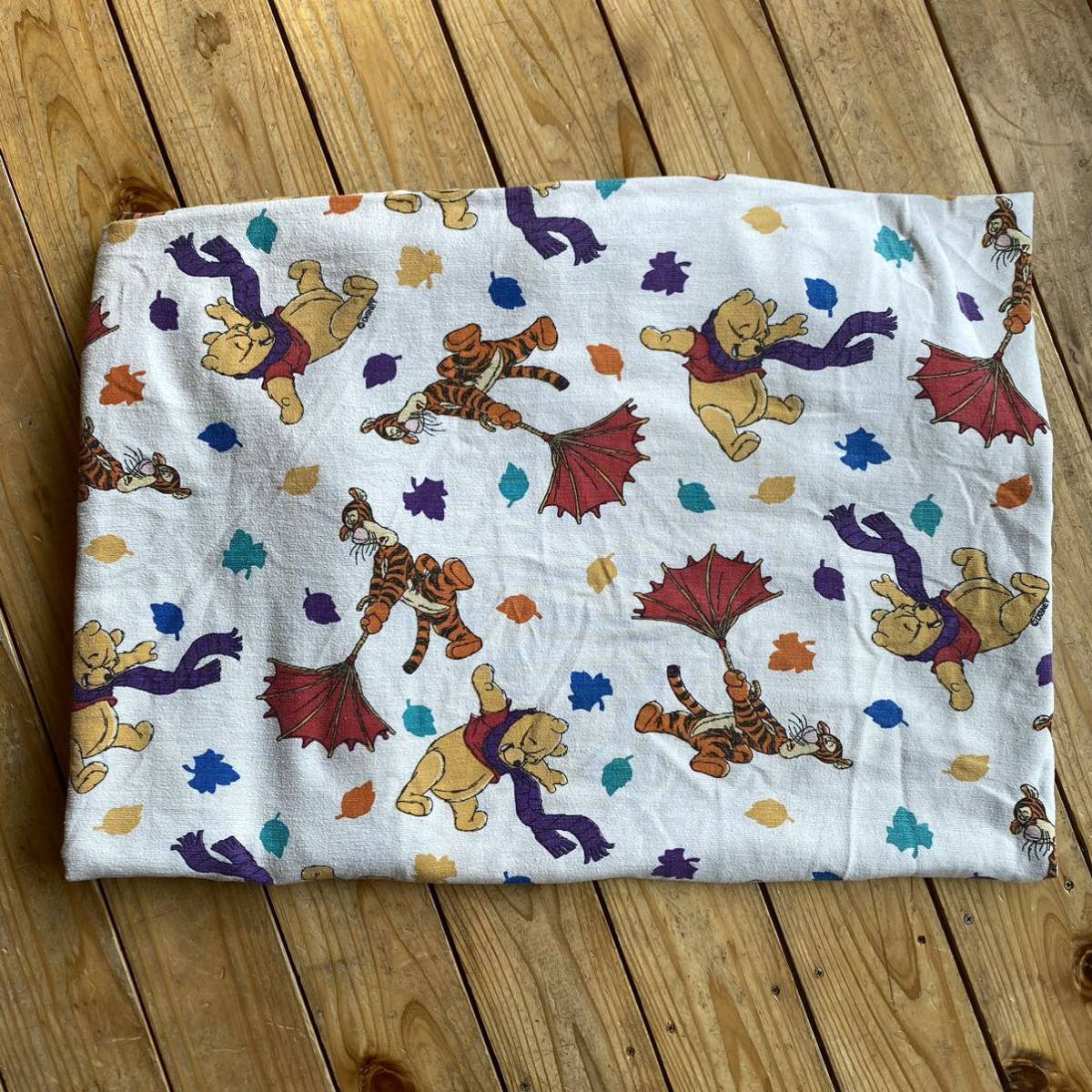 > USA ヴィンテージ ベッドシーツ くまのプーさん リメイク生地 ボックスシーツ カラフル ティガー キャラクター アメリカ仕入 総柄 B1463