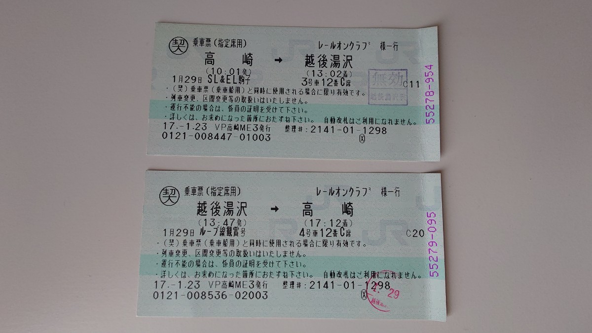 - ▽JR▽高崎→越後湯沢 SL&EL駒号・越後湯沢→高崎ループ線観賞号 乗車票▽マルス券2種一括