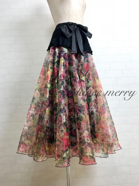 > ★送料無料★【MERRY】 ベルト付き 社交ダンス スカート 4740 パーティ レッスン 黒 オレンジ ピンク スタンダード クイック ワルツ