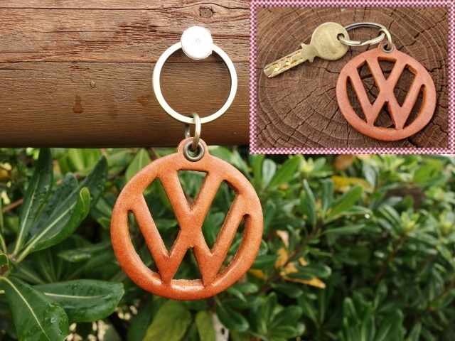 - 【送料無料】フォルクスワーゲン キーホルダー キーリング レザー 革 ライトブラウン ワーゲン VOLKSWAGEN BEETLE