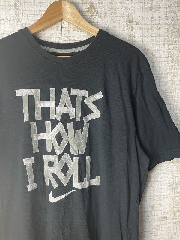 > ☆ビッグサイズ US古着 NIKE ナイキ Tシャツ 半袖 デザイン プリント ブラック黒【XL】コットン ◆3763◆