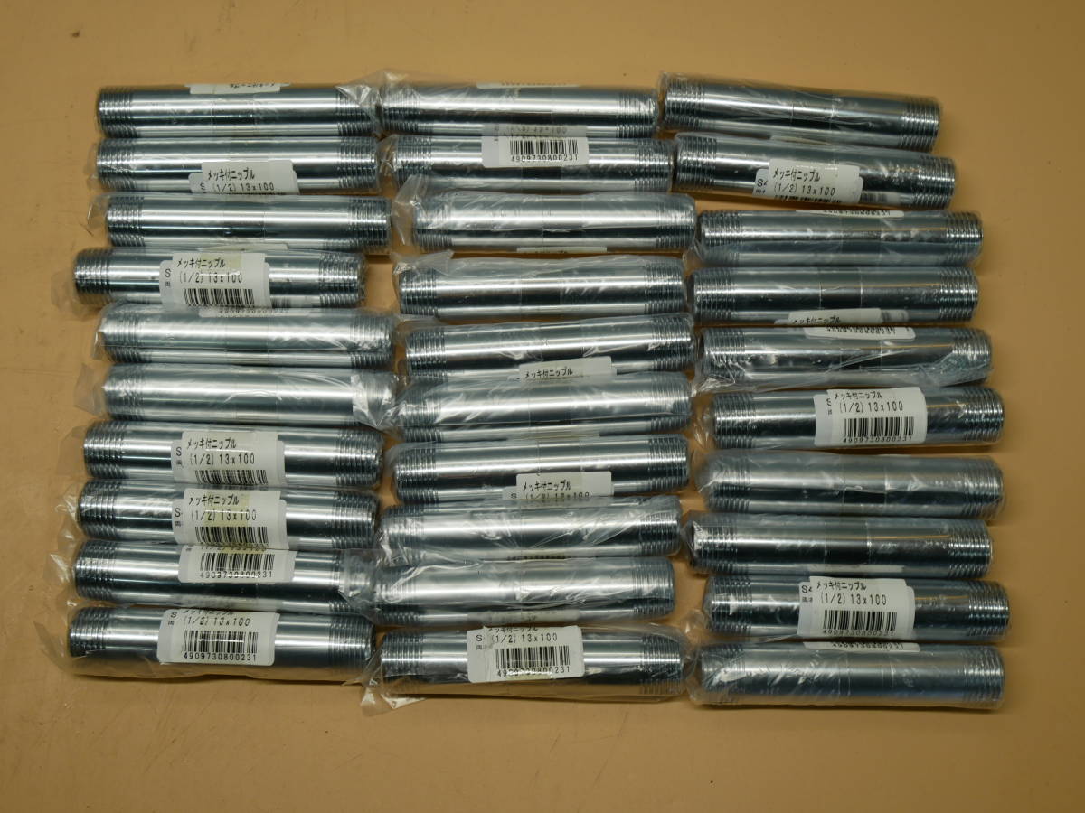 - メッキ付ニップル (1/2)13x100 30個セット 即決価格.
