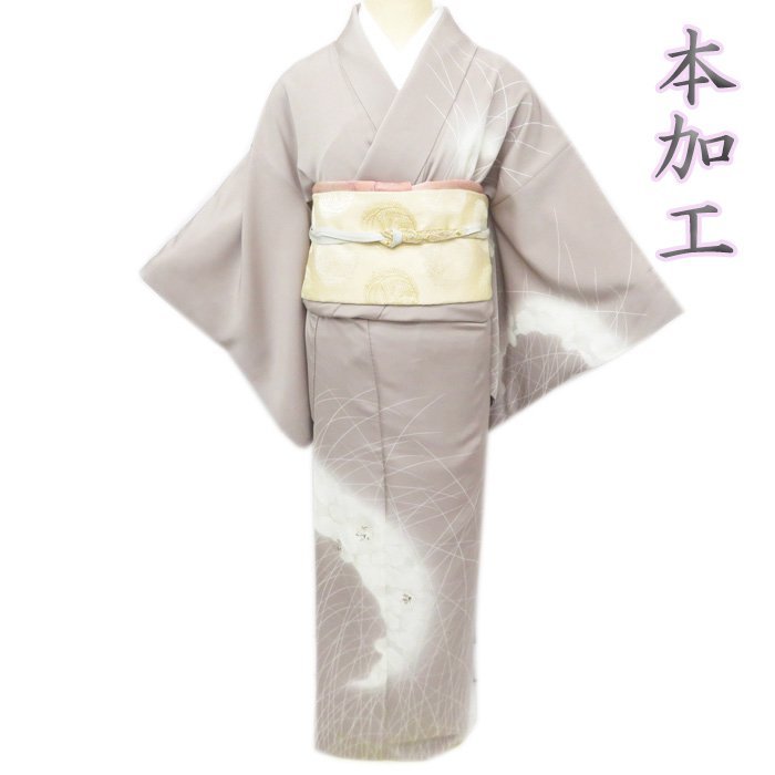 > ★きもの北條★ 特選 本加工 芝草に雪輪模様 秋草 刺繍 風雅な美に満ちた逸品 やや淡い胡桃染色 着物 訪問着 A759-7 SA 【中古】