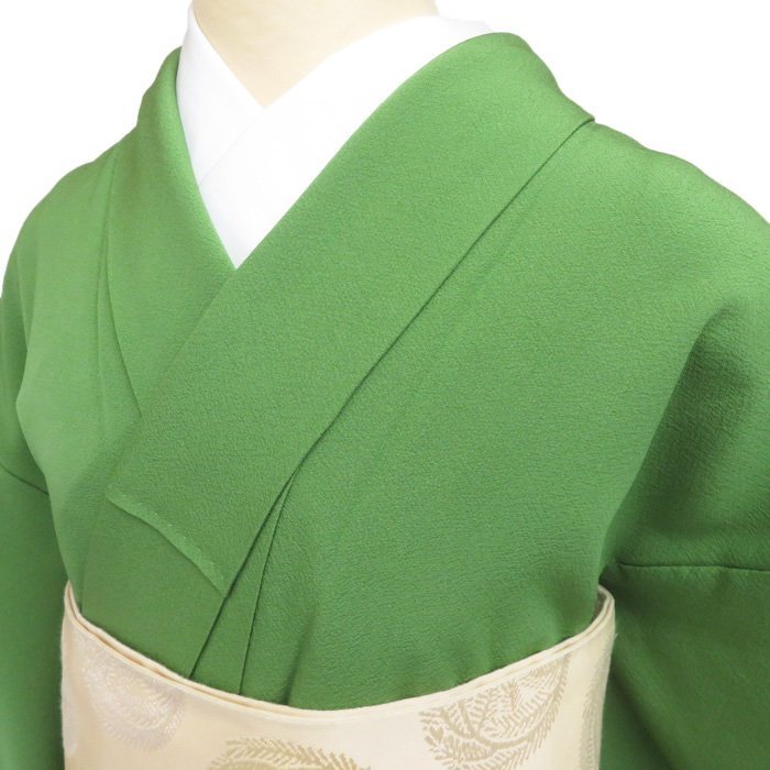> ★きもの北條★ 御茶着 お茶着 茶道 紋付 落ち着きある装いに 草色 着物 色無地 A735-7 SA 【中古】