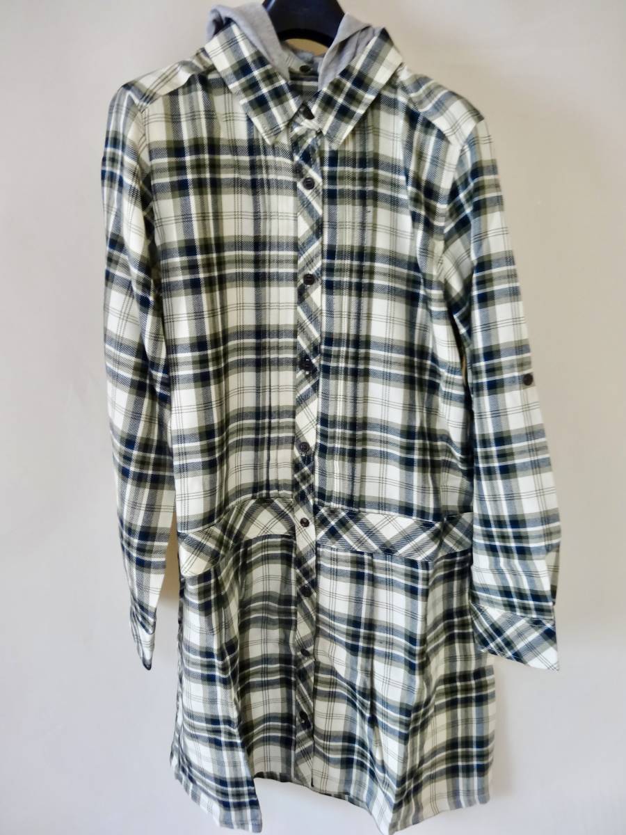 - 31.美品 ベルメゾン シャツワンピース風 L グリーン系 チェック フード