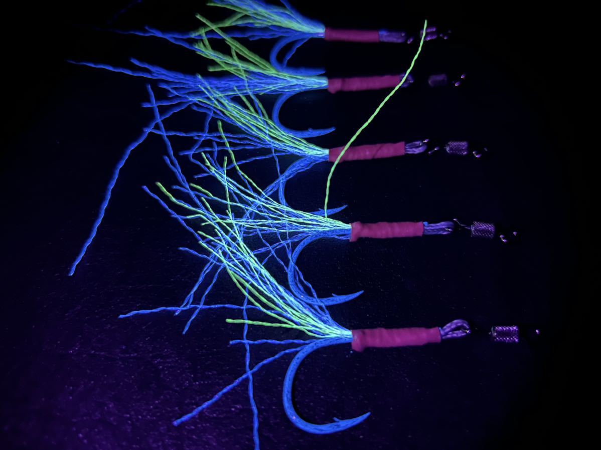 > SASAME アキアジマキリ18号5本セット タコベイト1.5 ウキルアー用 鮭釣り 超発光ルミホワイト 超ケイムラホワイトベース③