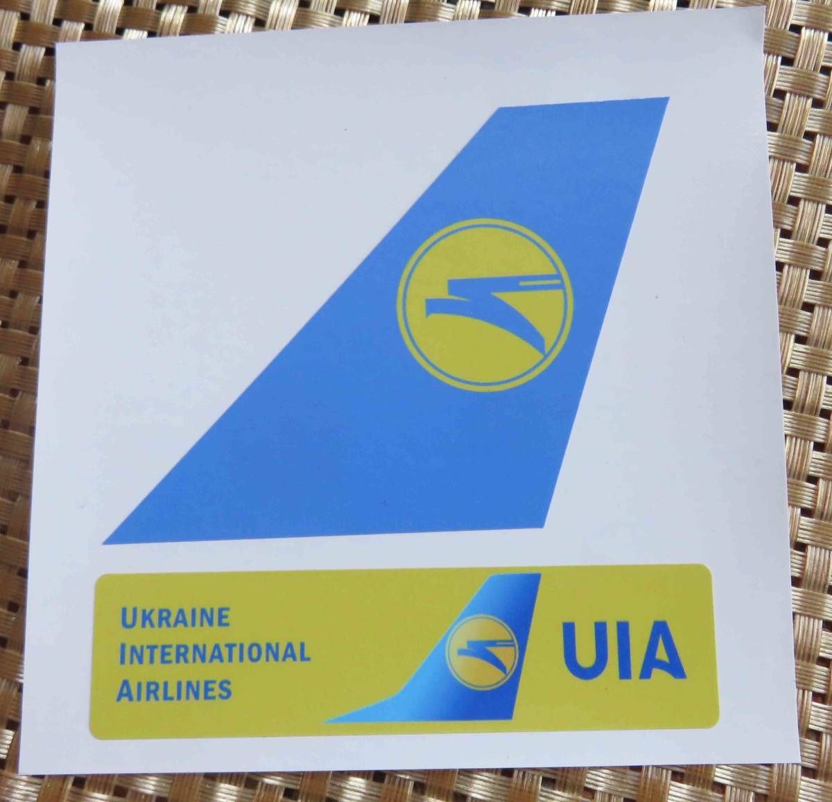 > 2枚セット(尾翼+長方形)■空黄UIA◆ウクライナ国際航空ステッカー シール■エアライン 飛行機■海外旅行◎留学出張 スーツケース貼付