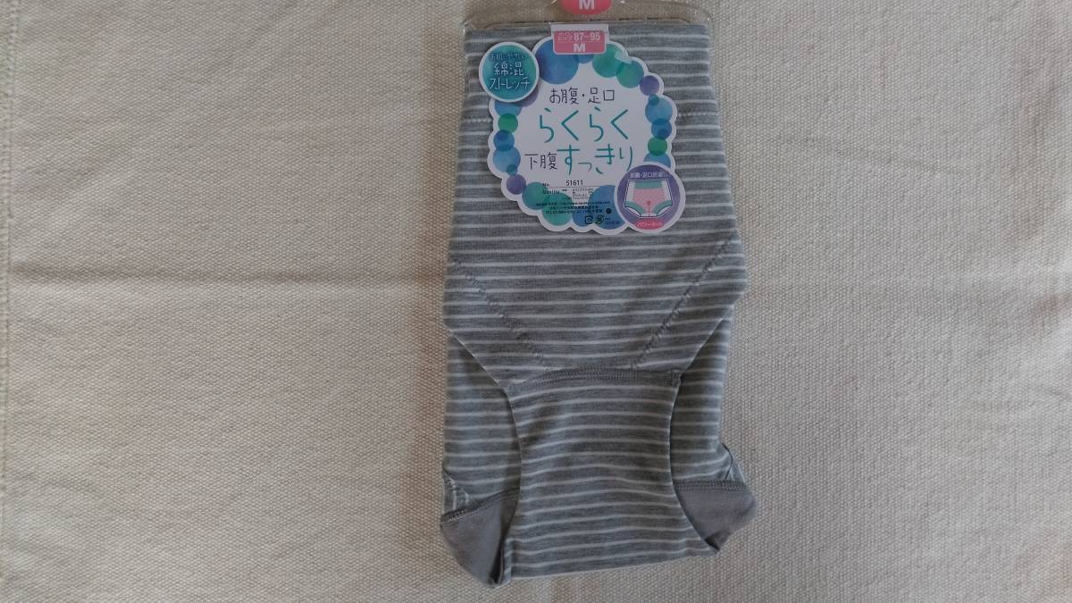 - ◎綿混ストレッチ グレイ地ボーダー柄のショーツ M