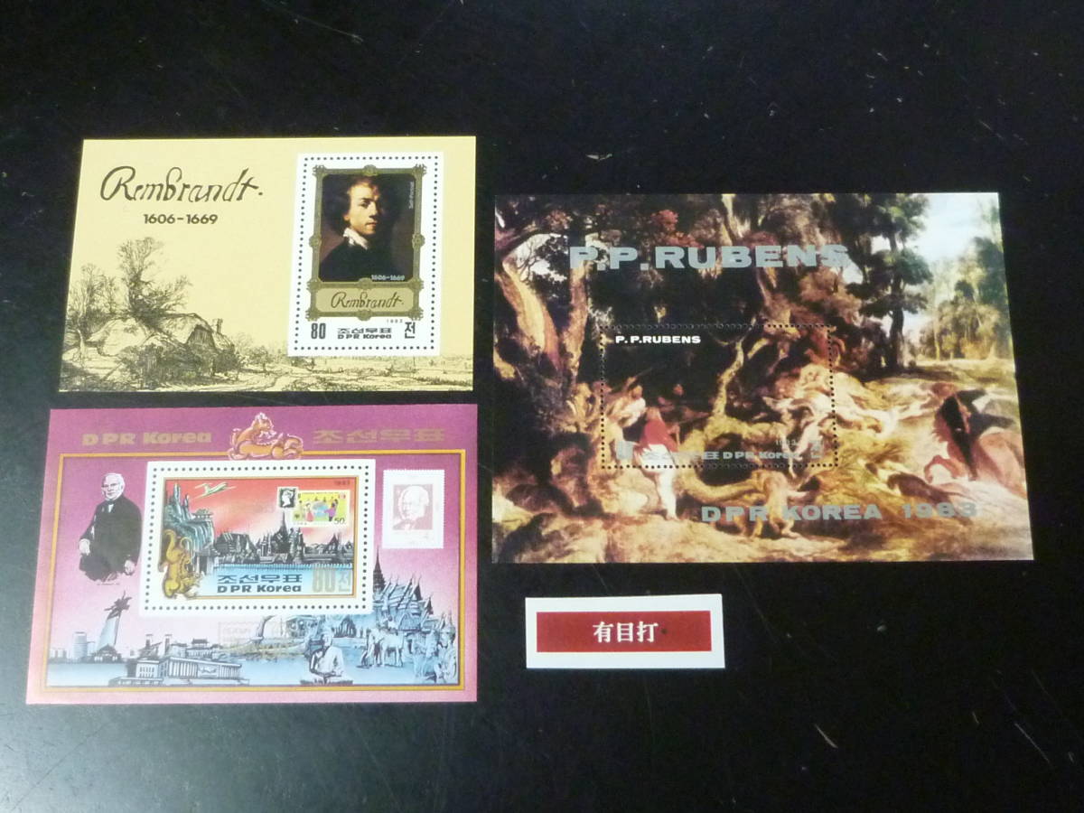 - 23 A s/s№56 北朝鮮切手 有目打 1983年 SC#2269-2336の内 絵画・他 小型シート 計3種 未使用NH・VF