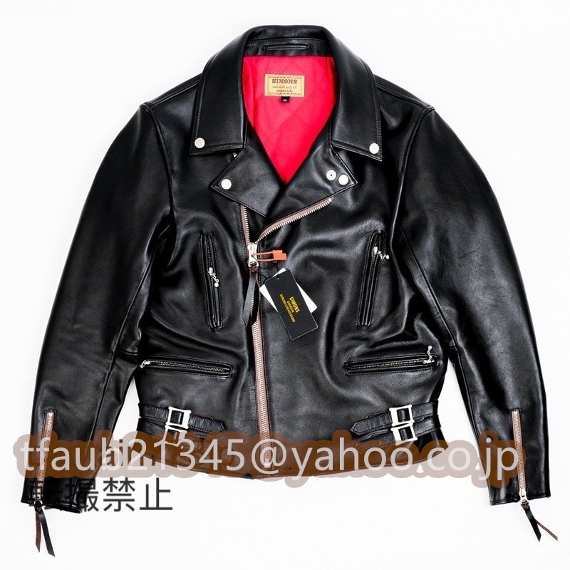 > 1.6mm 茶芯カーフスキン 70's サイクロンスタイル タイトフィット 牛革 ダブルライダース ブラック L(38) ロンジャン サイズ選択可