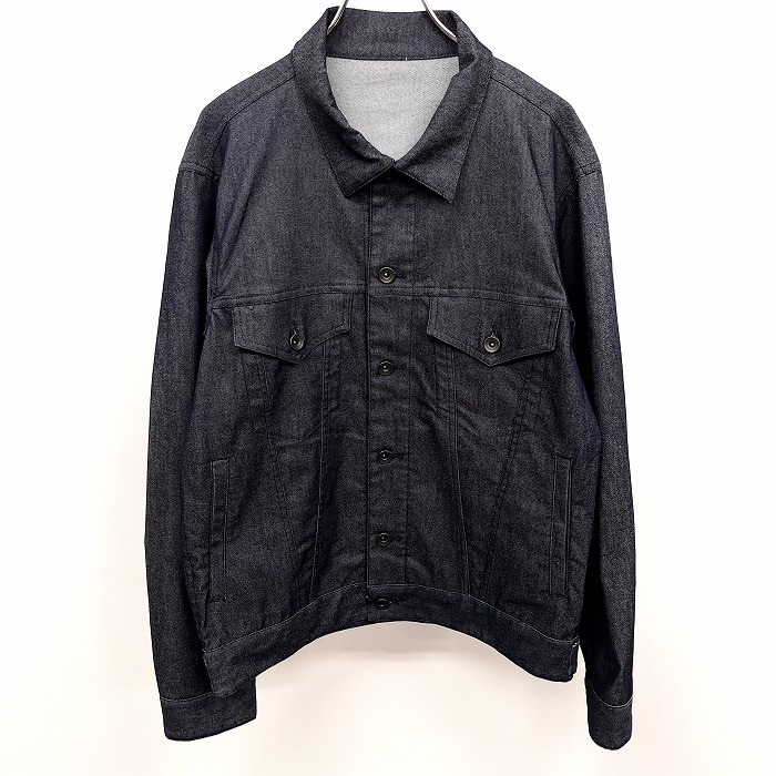 > THE SHOP TK 若干薄手 デニム トラッカージャケット Gジャン ジージャン ボタン留め 無地 ストレッチ 長袖 綿×ポリなど L 青系 メンズ