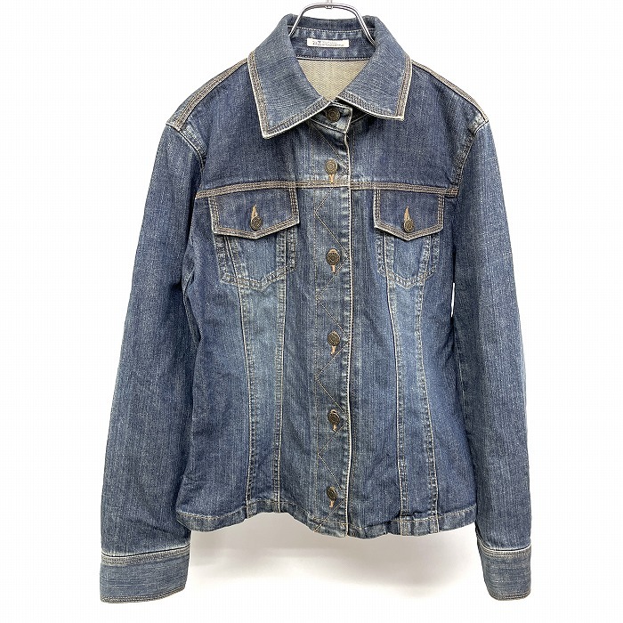 - ニジュウサンク 23区 デニム トラッカージャケット Gジャン ジージャン ボタン留め 無地 裏地無し 長袖 ブルー 青 レディース 女性