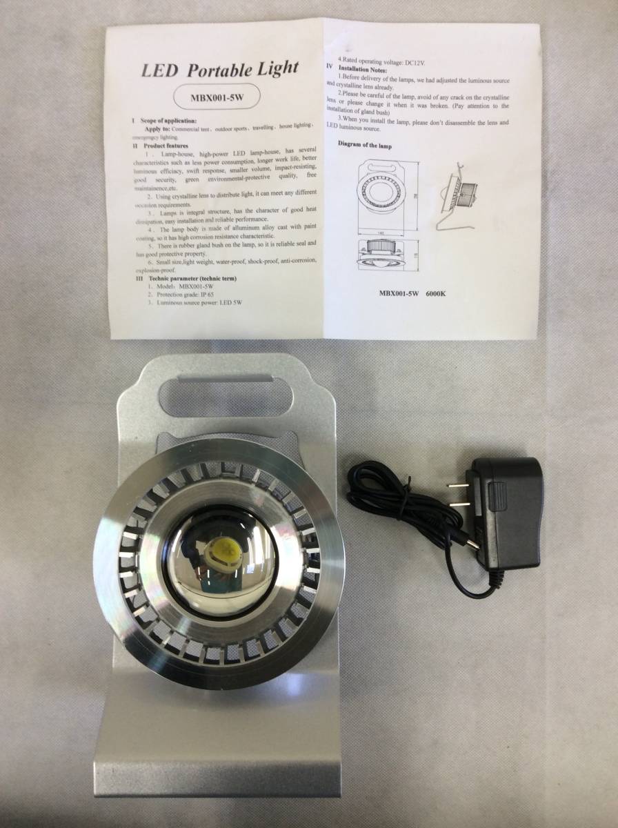 - LEDポータブルライト 充電式LEDライト MBX001-5W 6000K 昼白色 DC12V 5W 全長約26㎝ 幅約14㎝ 電気工事 電材