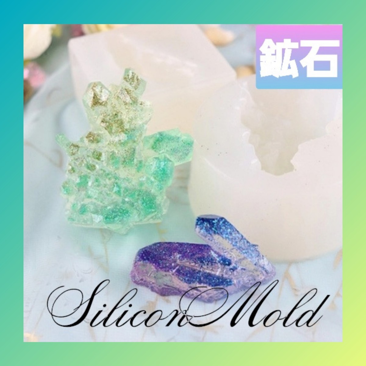 - シリコン モールド 鉱石 クリスタル 水晶 原石 パーツ 2種セット 01 クラスター オルゴナイト