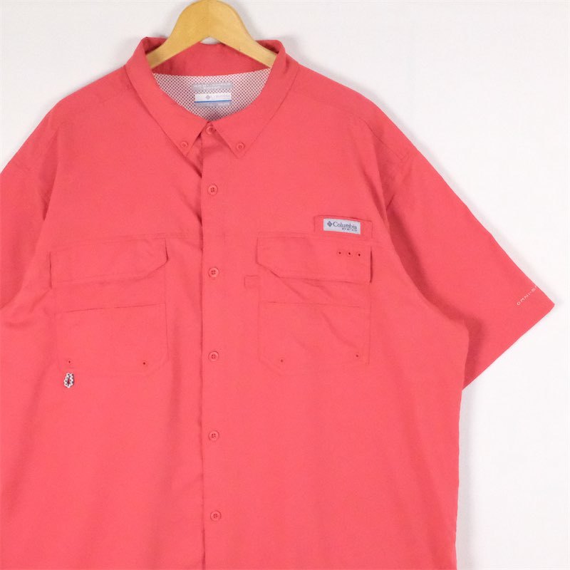 - 古着 大きいサイズ コロンビア PFG 半袖フィッシングシャツ メンズUS-XXLサイズ 無地 赤 レッド系 tn-1762n