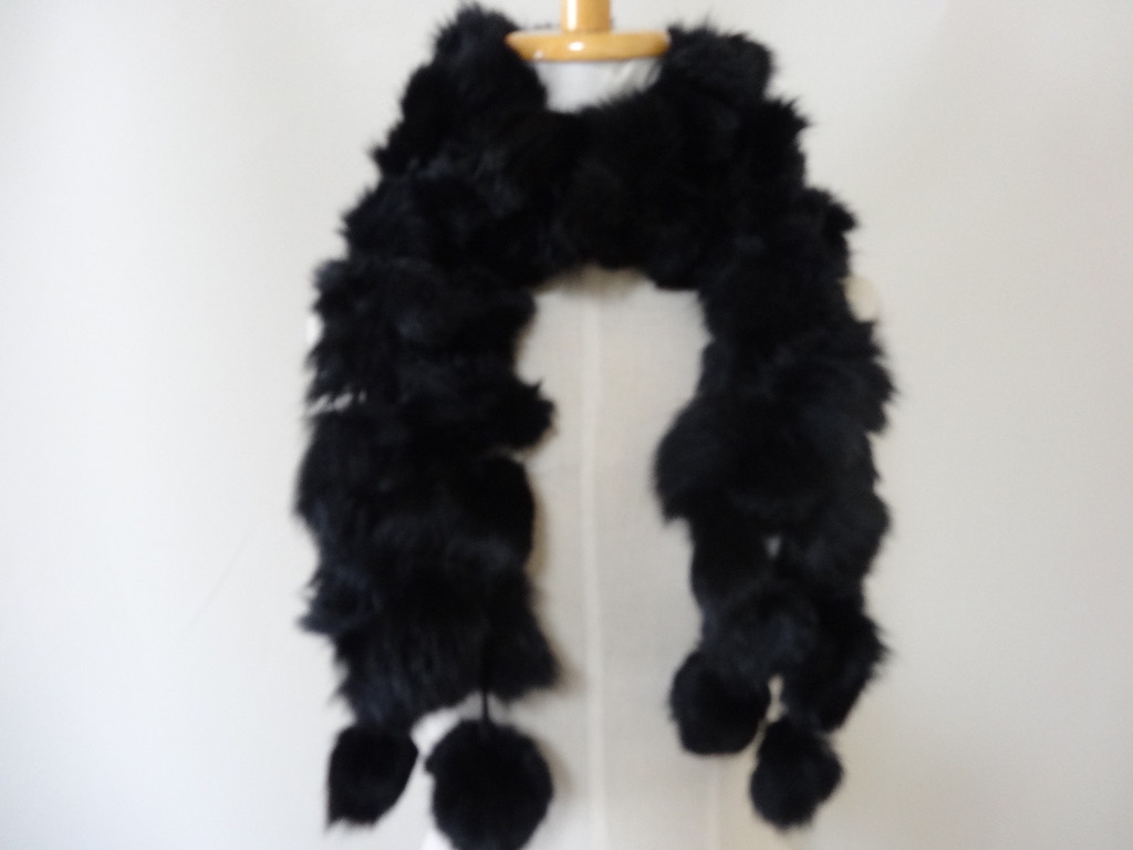 - 35-1.襟巻き 長さ約130cm 黒 ボンボン マフラー ファー ティペット