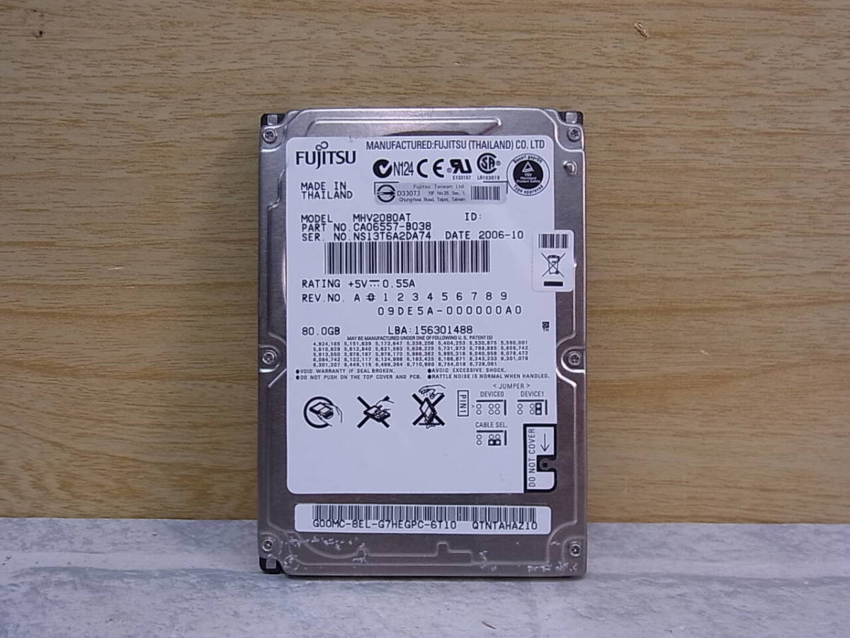 > △F/075●富士通 FUJITSU☆2.5インチHDD(ハードディスク)☆80GB UltraATA100 4200rpm☆MHV2080AT☆中古品