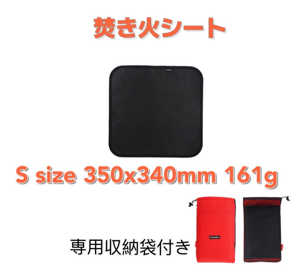 - 秋セール!!焚火シート 黒 S 防火 収納袋付 ガラス繊維 両面 シリコンコート キャンプ 防炎
