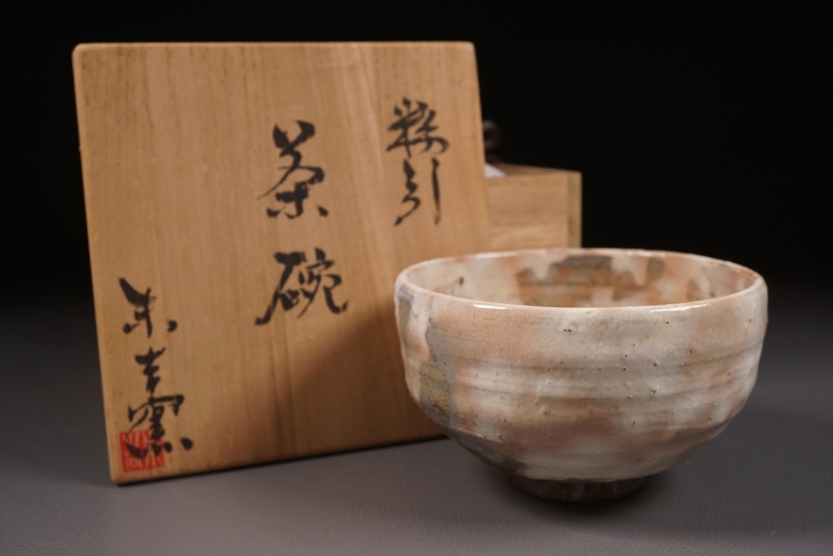 - 【千寿】末吉窯 粉引 茶碗 g93◆茶道具/在銘/共箱/0000