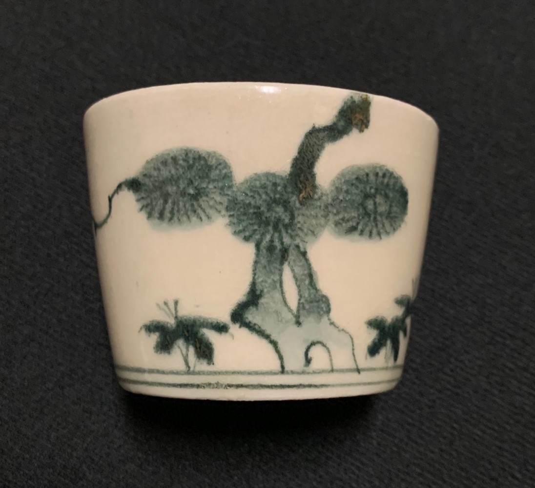 - 老松と小笹B 三蓋松 見込 四方襷 窯傷有 蕎麦猪口 そば猪口