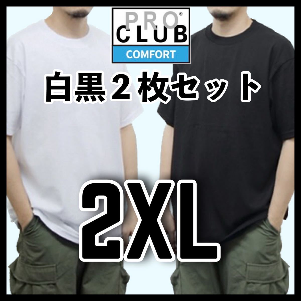 > 新品未使用 プロクラブ 5.8oz コンフォート 無地 半袖 Tシャツ 白黒 2枚セット 2XL サイズ PROCLUB COMFORT クルーネック