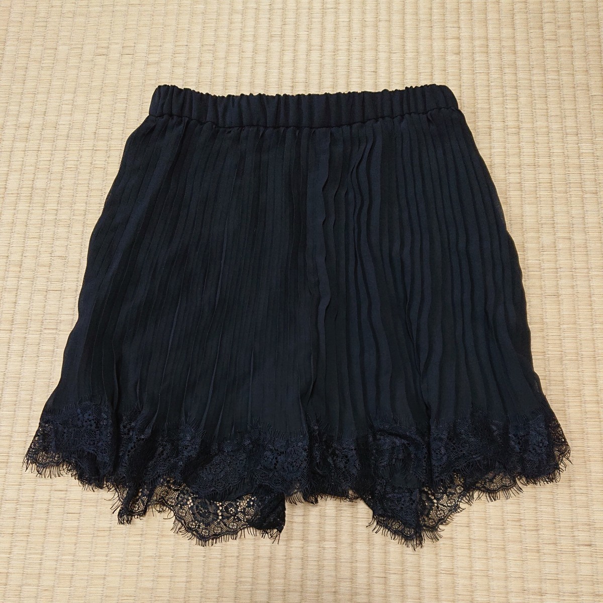 - 【ワンコイン古着】サイズF 黒のプリーツスカート風のショートパンツ