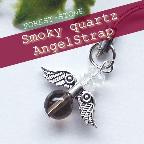 - 天然石 天使のぷち ストラップ スモーキークォーツ s2-10-s