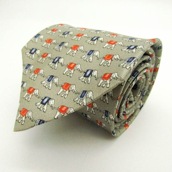- ジムトンプソン シルク 動物柄 象 総柄 ブランド ネクタイ メンズ グレー 良品 JIM THOMPSON