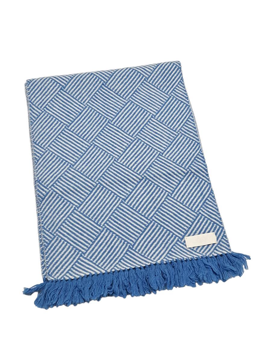 - 新品同様 エルメス ストール マフラー カシミヤ レザータグ 100% ネパール製 ブルー 青 パターン カシミア 【中古】