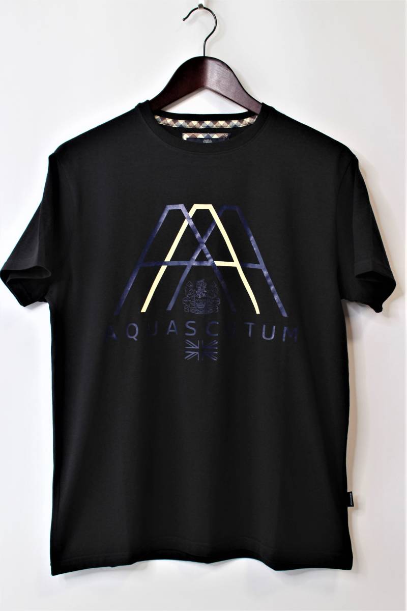 - L 春夏 スペシャル特価「アクアスキュータム」イギリス王室御用達・Tシャツ・ブランドロゴ デザイン・ブラック♪サイズL