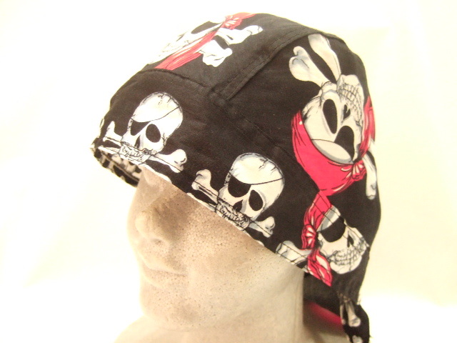 - 横浜最新 海賊ドクロ♪魅惑のバンダナキャップ黒 メンズレディース 同梱4枚まで送料180円ξbcξ ξ27