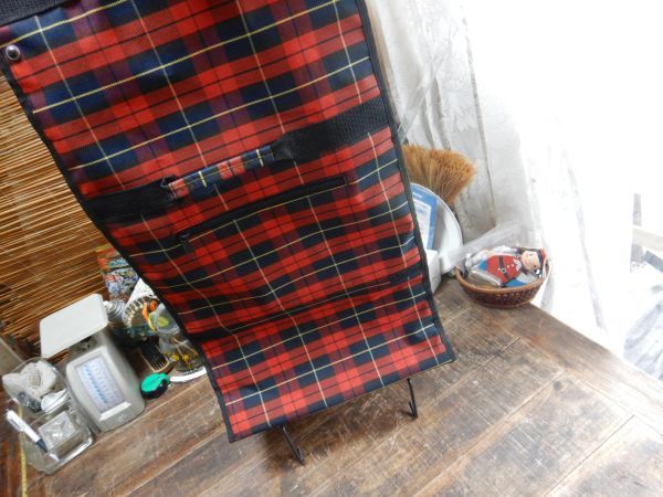- 携帯用キャリーバッグ 引き袋 赤チェック062102 袋部15x34h60cm 折畳
