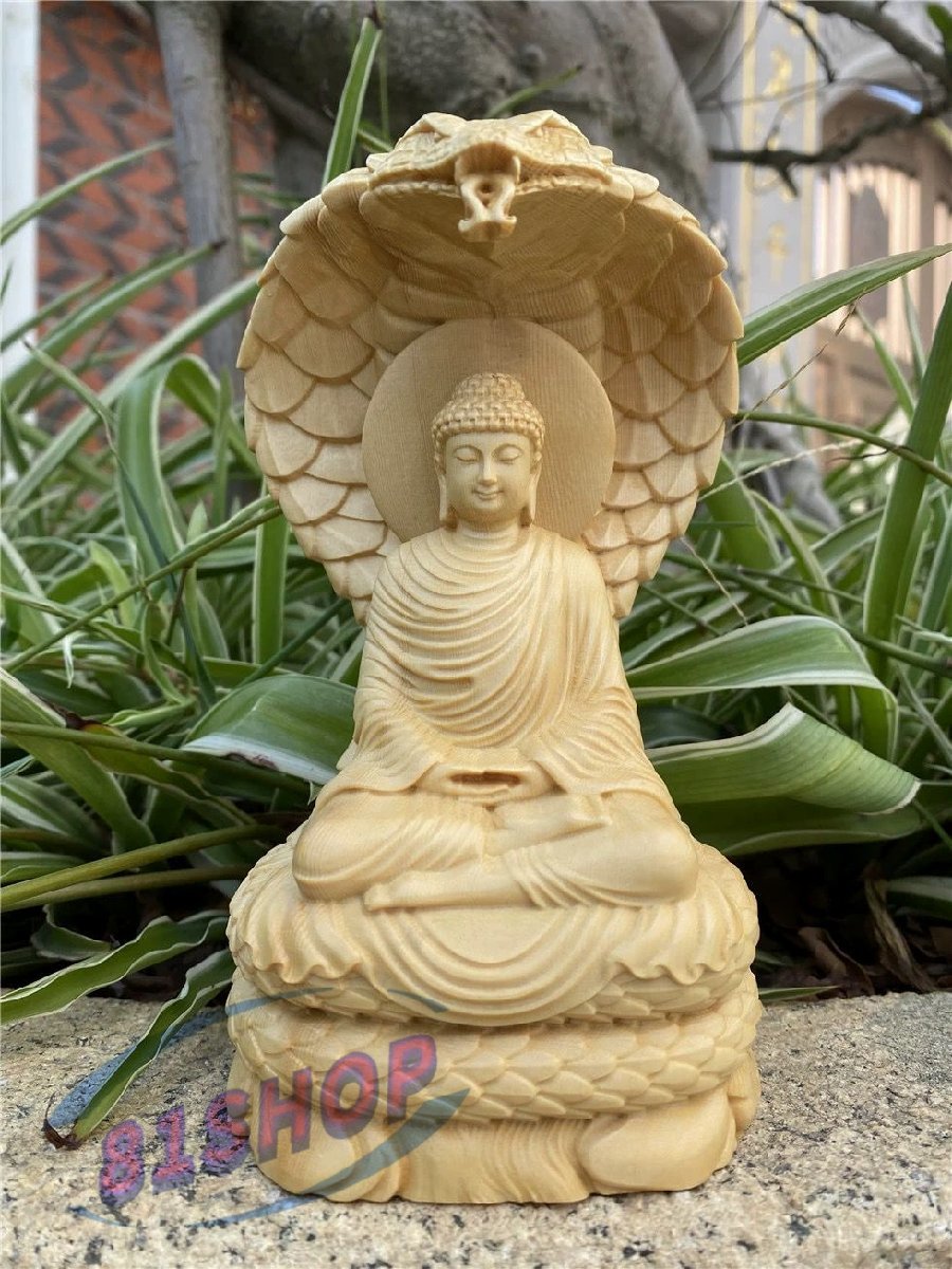 - 「81SHOP」 釈迦如来坐像★仏教美術 仏像 彫刻 ヒノキ檜木 美術品 東洋彫刻 置物 高さ16cm