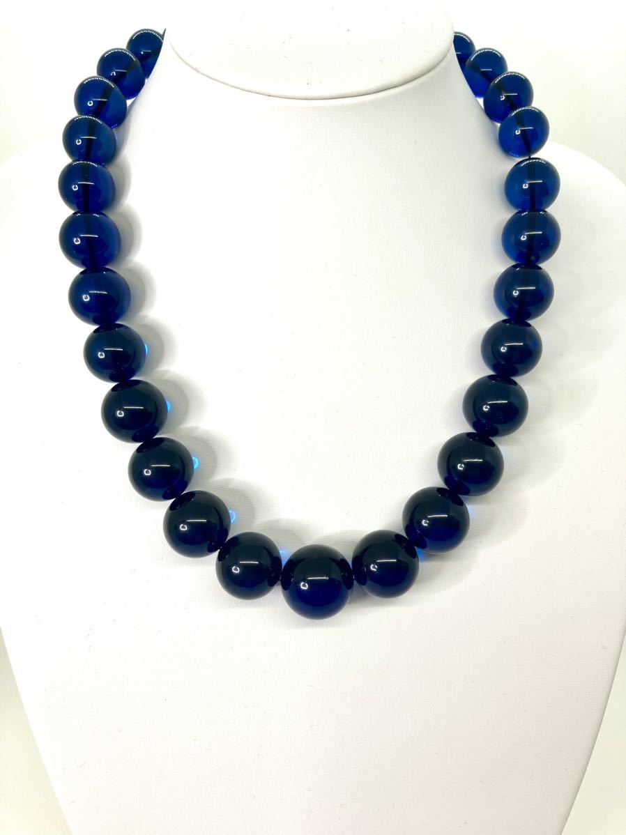 - 【新品】ブルーアンバー(琥珀)ネックレス*リトアニア産*こはく*コハク*シンプル*ラウンド*大珠*希少*一連ネックレス*琥珀