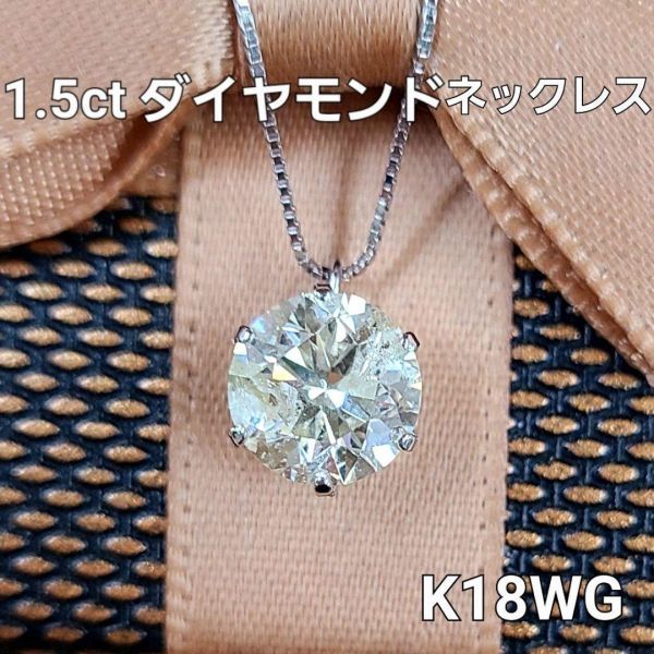 > 【鑑定書付】ギラギラ大粒! 1.5ct 天然 ダイヤモンド K18 WG ホワイトゴールド 6本爪 一粒 ペンダント ネックレス 4月誕生石 18金