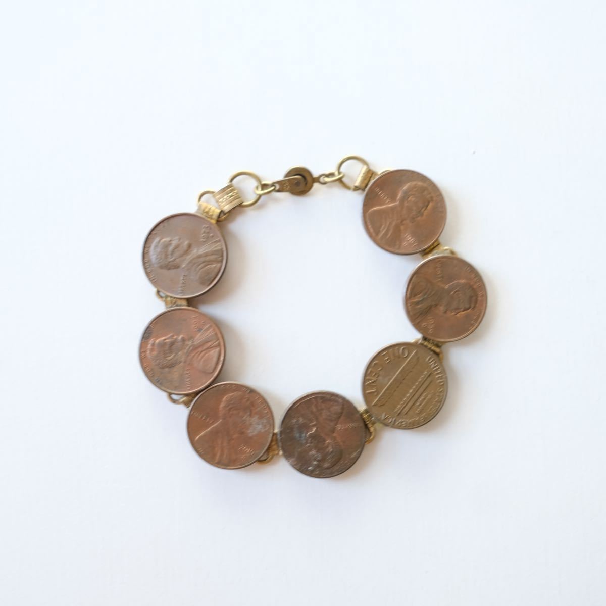 - 【ビンテージ】コインブレスレット USA製 ハンドメイド デザイン アンティーク ヒッピー 1セント 硬貨
