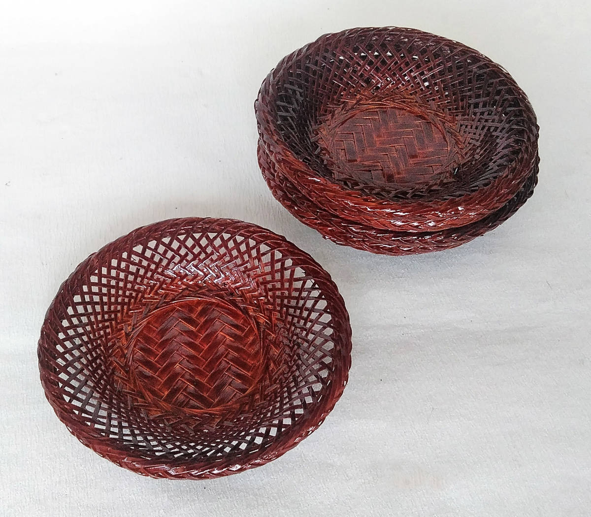 - 竹製 茶托 コースター 溜塗折返茶托 5枚 直径12cm~ ★新品★