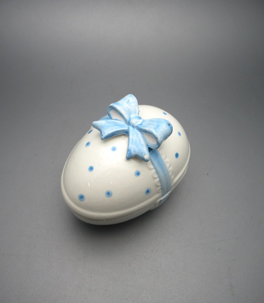 - A265◆陶器置物 KATO KOGEI 加藤工芸 リボン蓋物 玉子 昭和レトロ インテリア アンティーク 元箱