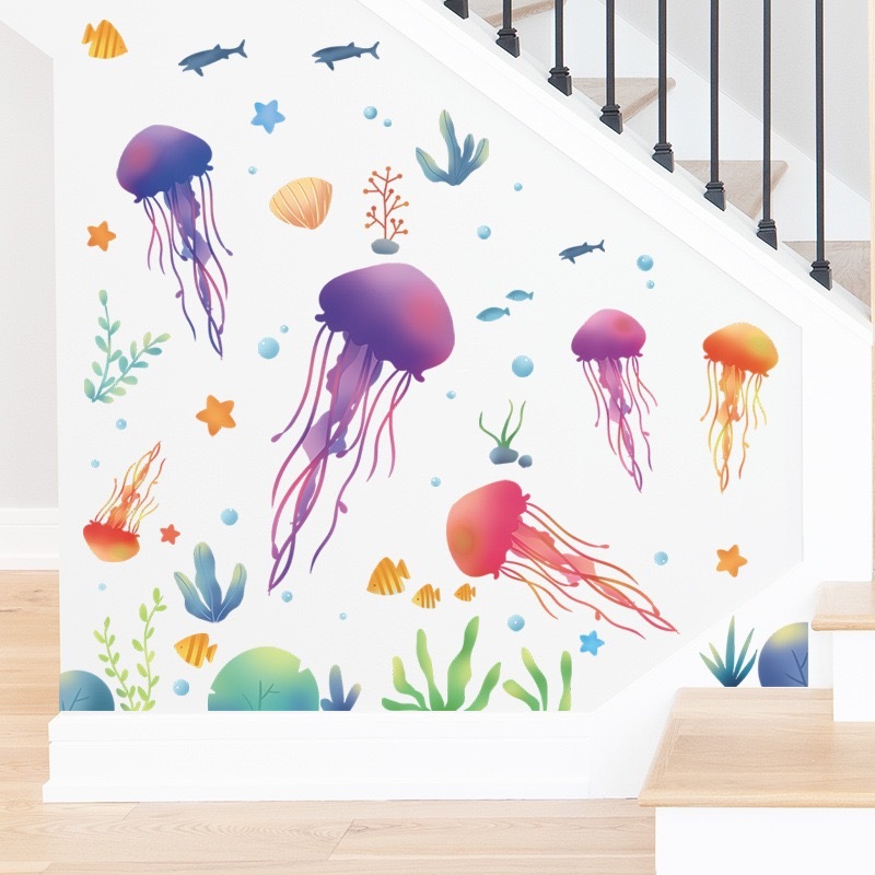 - ウォールステッカー YDC013 海 クジラ 珊瑚 魚 癒す DIY 壁紙 インテリアシート 剥がせるシール 送料無料