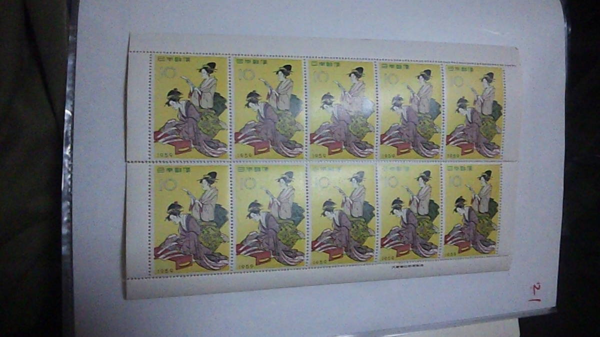 - .未使用切手 切手趣味週間 1959年 浮世源氏 10円10枚シート