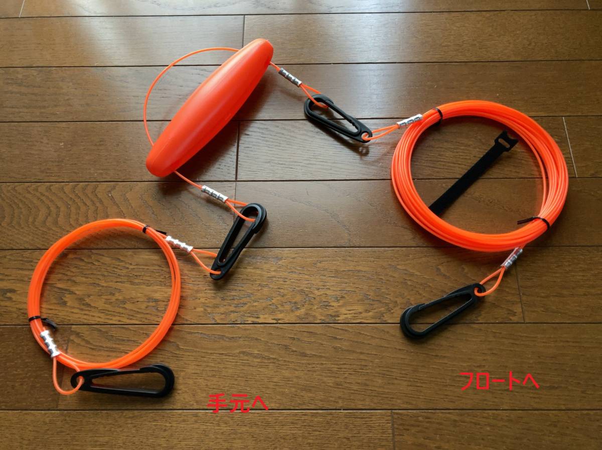 > オリジナルフロートラインシステム★中間フロート&サブ3m+メイン15m=合計18mセット カラビナ90mm付き★素潜り手銛魚突き